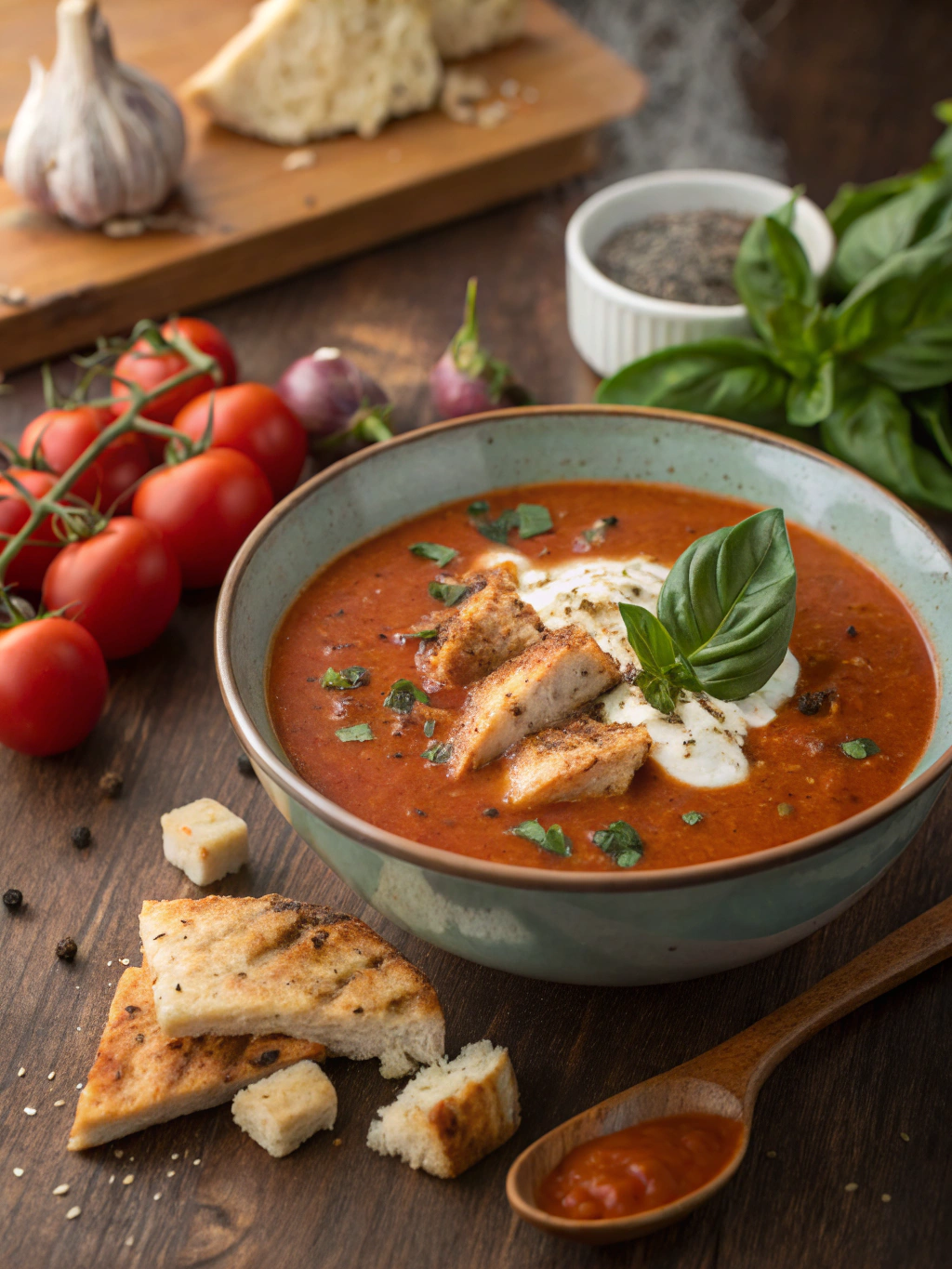 Elevate your smoky chicken tomato bisque with these pairing ideas: